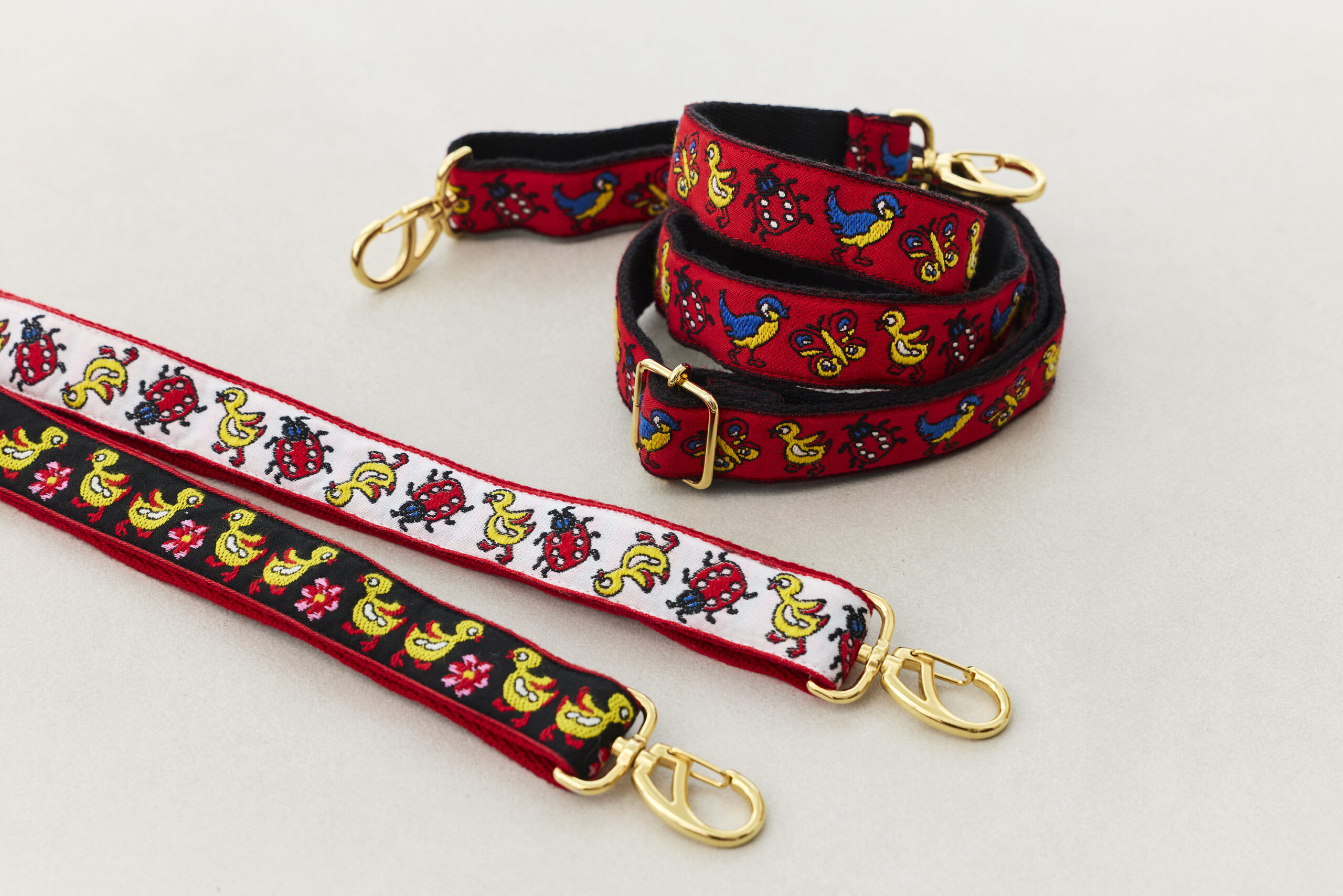 弊社レピヤンリボンとのコラボレーションによるショルダーストラップを制作いたしました。